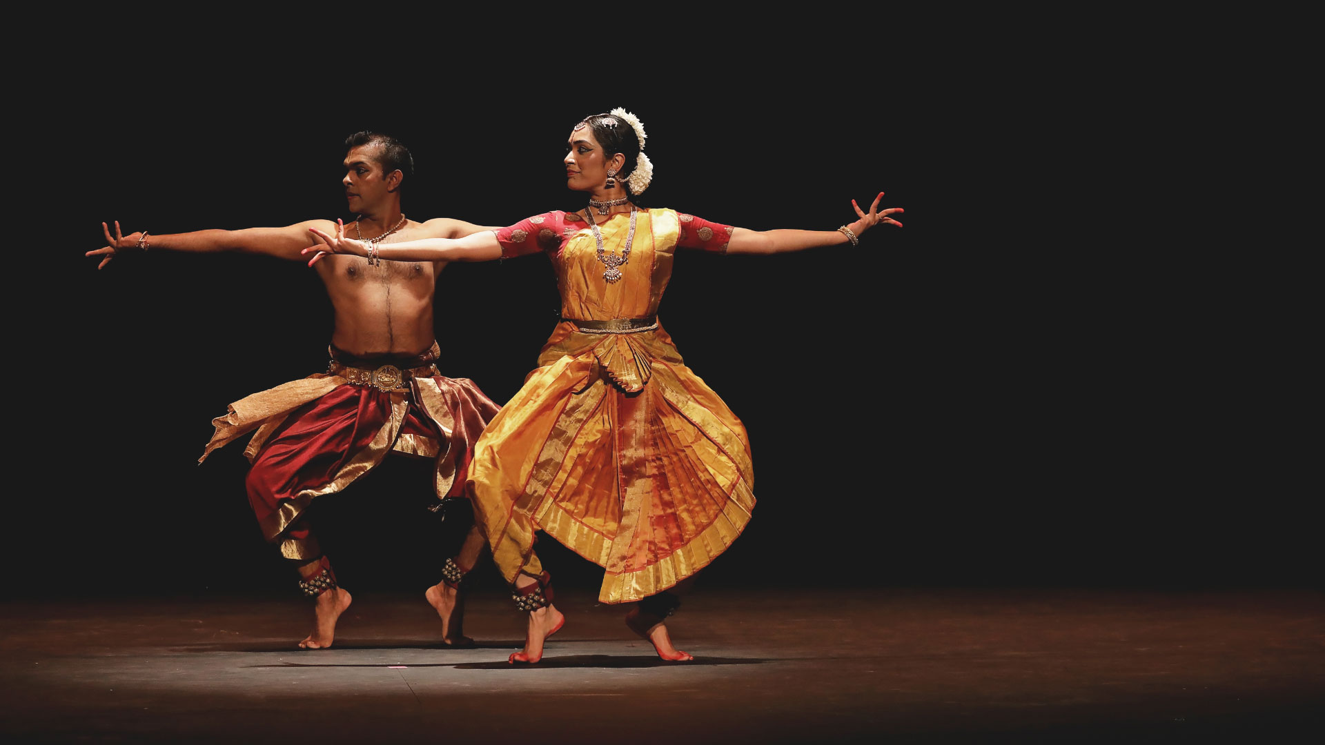 Pareekshana, our maiden duet production, involves five separate pieces set in the format of a margam - a traditional bharatanatyam repertoire. They were mostly composed by contemporary artists and chosen with an intent to experiment with music and choreography. The compositions’ melodies opened the possibilities of finding parallels and counterpoints in western classical music. A string orchestra added a rich and subtle layer to the musical experience, bringing in a refreshing tone.